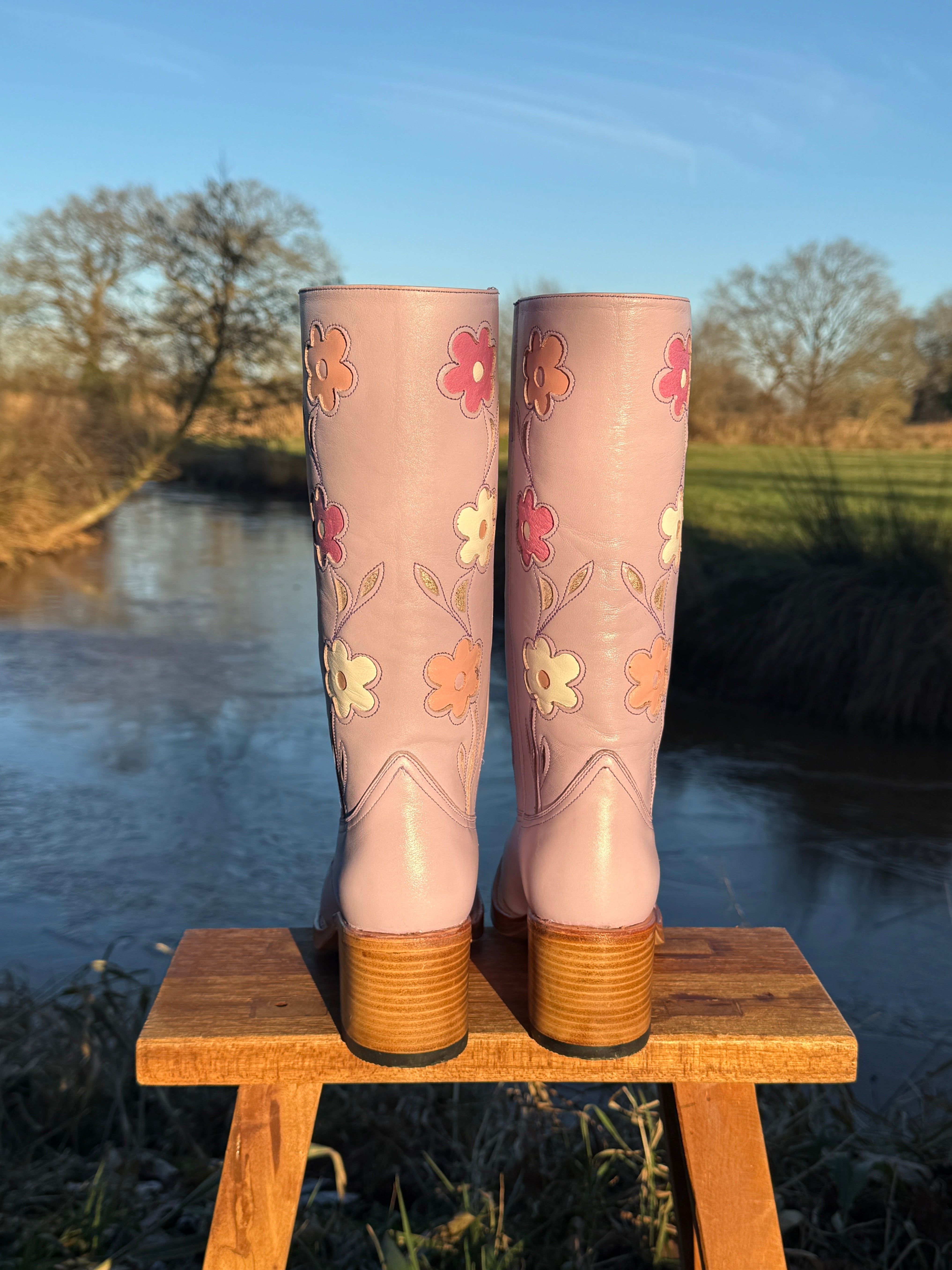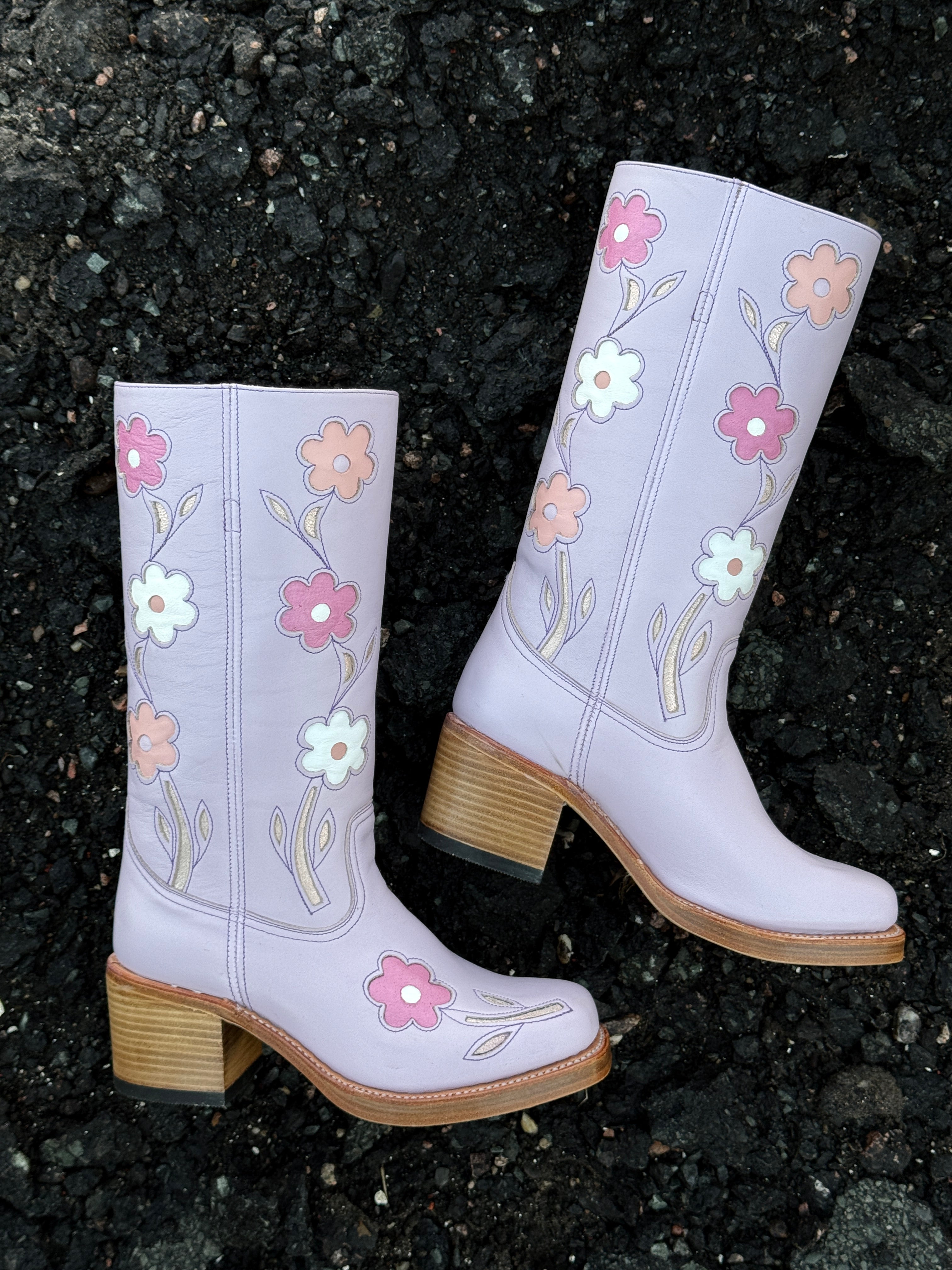 managed to snag the wide calf camel flower boots, as my calves are 16 inches and most boots dont accomodate that. the customer support was so helpful and i ended up getting a 9.5 so i could wear tights and thicker socks with them and im so glad i did that! (im usually a 9)