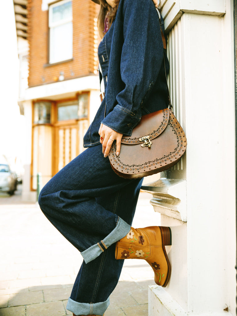Die Goldie besticht durch dezente Eleganz und ein einzigartiges Muster, das die natürliche Maserung des Leders perfekt ergänzt. Dieses elegante, minimalistische Modell ist ideal für den Alltag und bietet einen schicken, modernen Look sowie ausreichend Platz für Ihre wichtigsten Dinge. Es fühlt sich luxuriös an und die robuste Verarbeitung garantiert Langlebigkeit im täglichen Gebrauch.