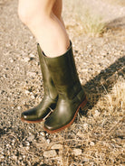 Grüne Stiefel mit niedrigem Absatz