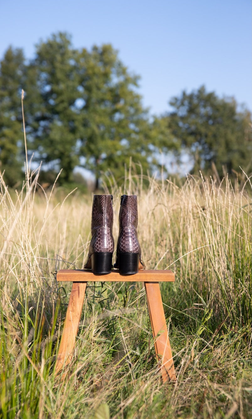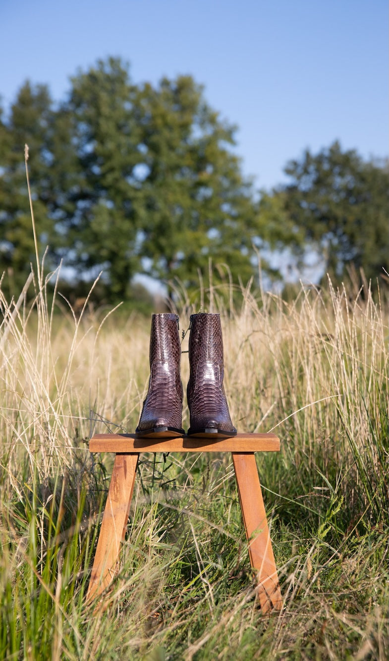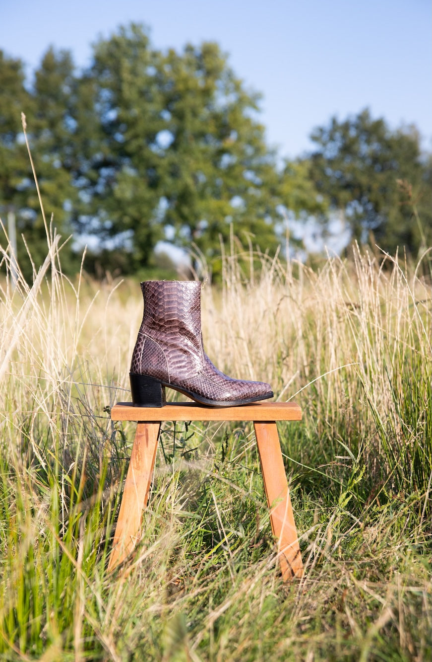 Ziehen Sie mit Ihrem Stil überall die Blicke auf sich! Setzen Sie mit auffälligen Python-Prints, floralen Akzenten und kunstvollen Patchwork-Designs ein Statement, die garantiert alle Blicke auf sich ziehen. Verleihen Sie Ihrem Look mit satten Rottönen, verspielten Rosatönen und ausdrucksstarken Prints einen Hauch Romantik oder unterstreichen Sie den Western-Charme mit Lederstiefeln, die Ihnen den angesagten Cowgirl-Look verleihen. Dank der vielfältigen Auswahl an Lederstiefeln – von niedrigen über mittelhohe bis hin zu hohen Absätzen – sind Ihren Styling-Möglichkeiten keine Grenzen gesetzt! Ob Sie zeitlose Klassiker wie schwarze Stiefeletten und derbe Chelsea Boots bevorzugen oder lieber auffällige Modelle wie unsere klobigen Python-Patchwork-Stiefel tragen möchten: Die Deadstock Collection bietet eine einzigartige Kombination aus Handwerkskunst, Individualität und lässigem Stil. Sichern Sie sich jetzt ein exklusives Unikat – denn wenn weg, dann weg!