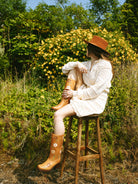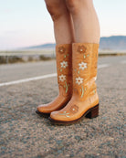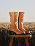 Du suchst Blumenstiefel für Frauen, die weich, feminin und das gewisse etwas haben? Dann könnten unsere Dandelie flower boots in Mandelbraun genau die Stiefel sein, die du dir wünscht. Der Farbton erinnert an geröstete Mandel, ein helles warmes Braun mit leicht cremigem Unterton.