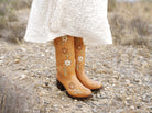 Unsere mandelbraunen Blumenstiefel werden aus hochwertigem Echtleder gefertigt, das sich von Anfang an angenehm anfühlt und mit der Zeit immer weicher wird. Das helle Braun bildet die ruhige Basis, während das florale Muster deine Damenstiefel besonders macht. Wenn du nach hellen braunen Stiefeln mit Blumenmuster suchst, die nicht zu laut sind und trotzdem einen liebevollen Akzent setzen, sind diese flower boots perfekt.
