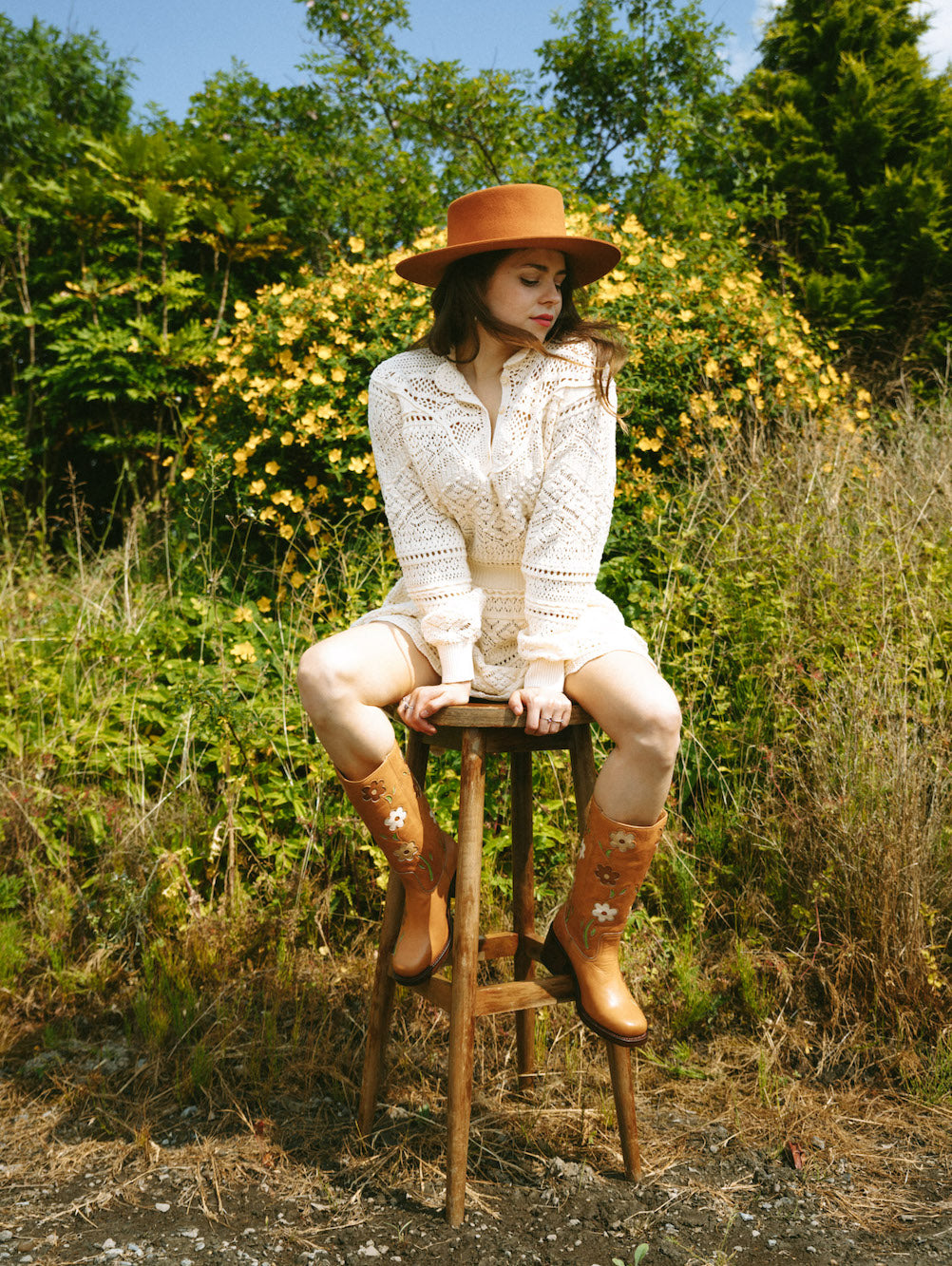 Für unsere mandelbraunen Blumenstiefel verwenden wir sorgfältig ausgewähltes Echtleder. Mit der Zeit entwickelt es eine feine Patina, die den Mandelton noch lebendiger wirken lässt und den leichten Vintage Charakter betont. Bei guter Pflege bleiben Farbe und Struktur lange schön.