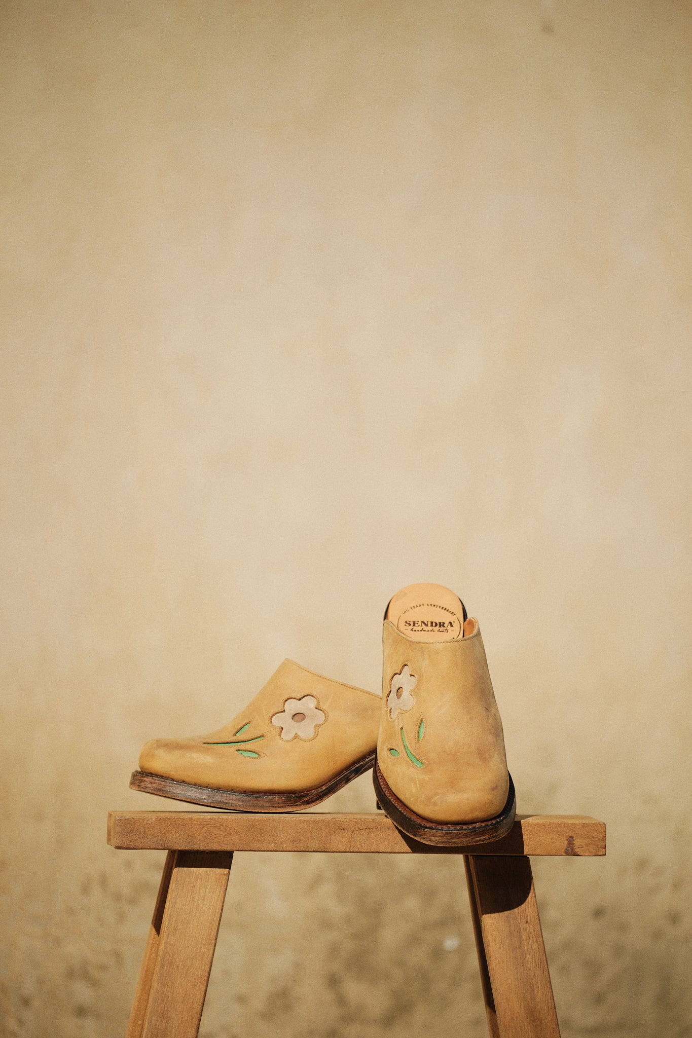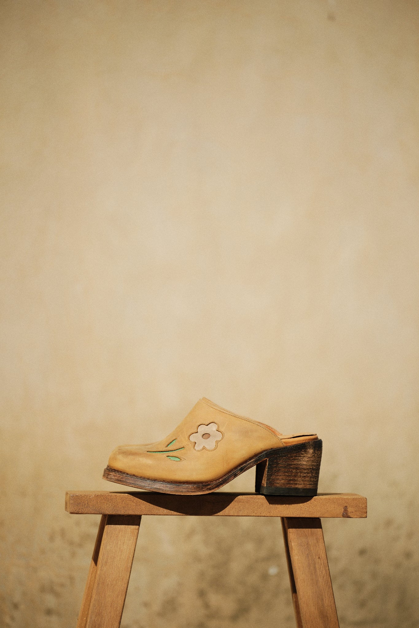 Wildlederclogs in Holzoptik mit zarten Blumenapplikationen verleihen diesen Schuhen einen rustikal-femininen Look. Das bequeme Fußbett sorgt für hohen Tragekomfort, ideal für lange Tage. Es handelt sich um einen Neuartikel, von dem nur noch ein Paar verfügbar ist.
