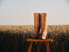 Der Schaft der Lederstiefel lässt sich mit Hilfe eines Schusters um etwa 2,5 bis 5 cm dehnen. Falls die Stiefel nur ein bisschen geweitet werden müssen, kannst du auch Schuhspanner für zu Hause verwenden. Da sie aus Rindsleder gefertigt sind, passen sie sich deinen Füßen an und können bei Bedarf gedehnt werden.