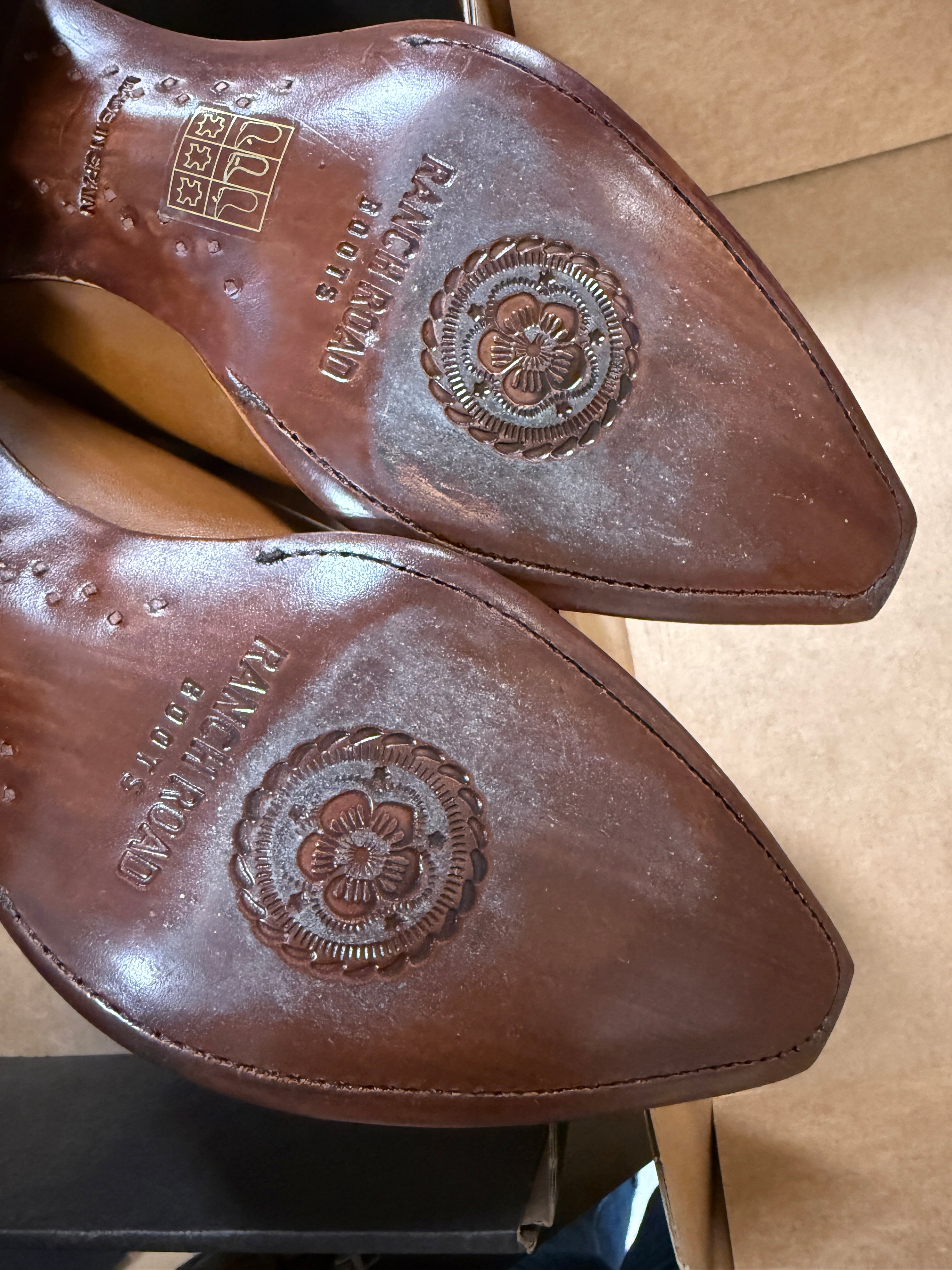 Braune Western Stiefeletten mit Sternenmuster – Deadstock