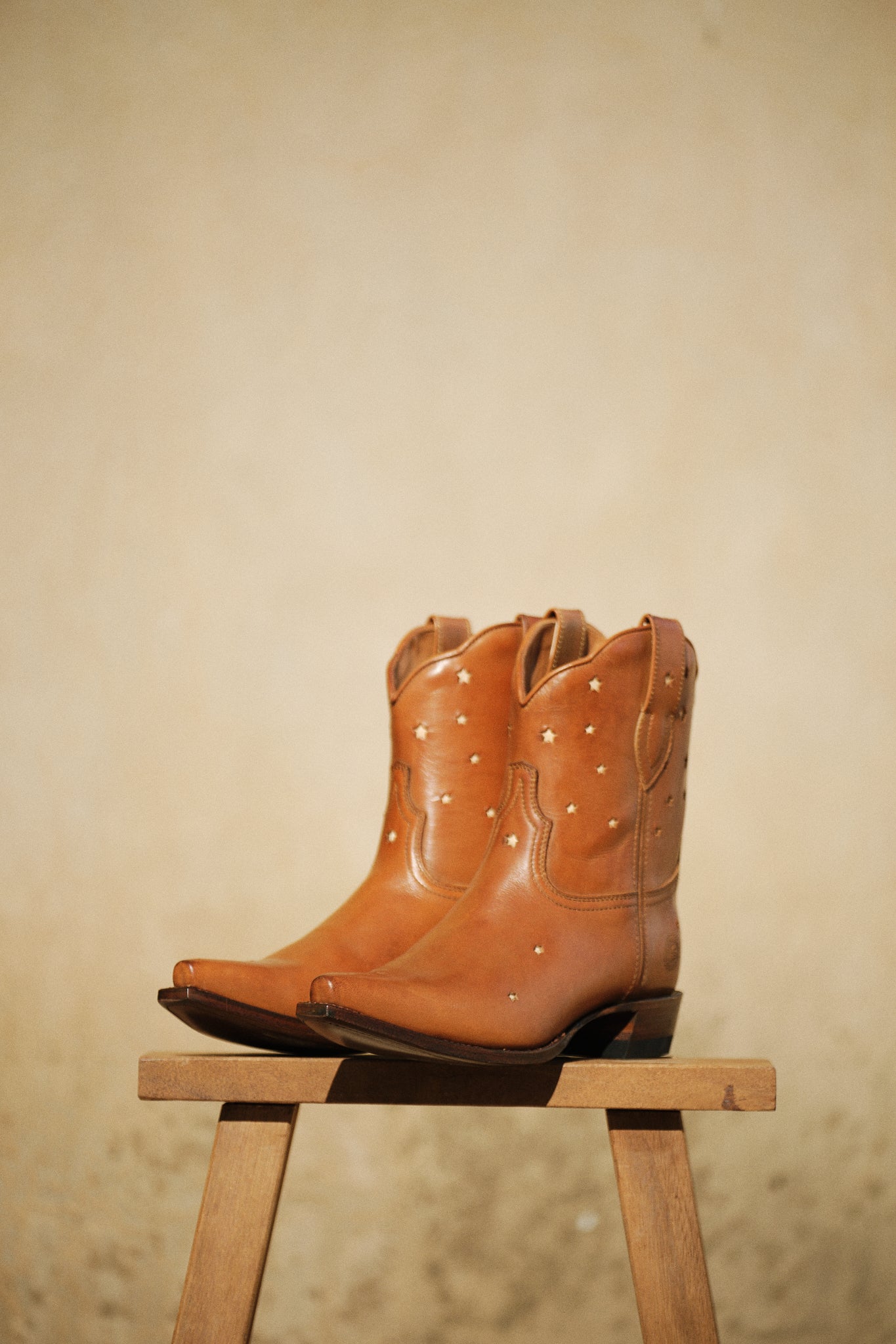 Sternenverzierungen und braunes Leder verleihen diesem Western-Ankle-Boot einen unkomplizierten Alltagslook. Handgefertigt in Spanien mit erstklassiger Verarbeitung für optimalen Tragekomfort. Nur ein Paar verfügbar.